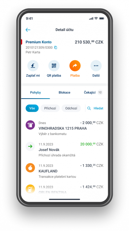 | Upozornění na uskutečněné transakce |