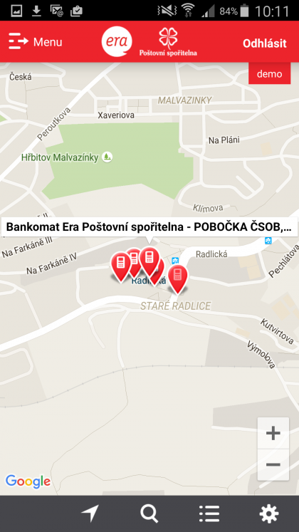 | Mapa poboček a bankomatů |