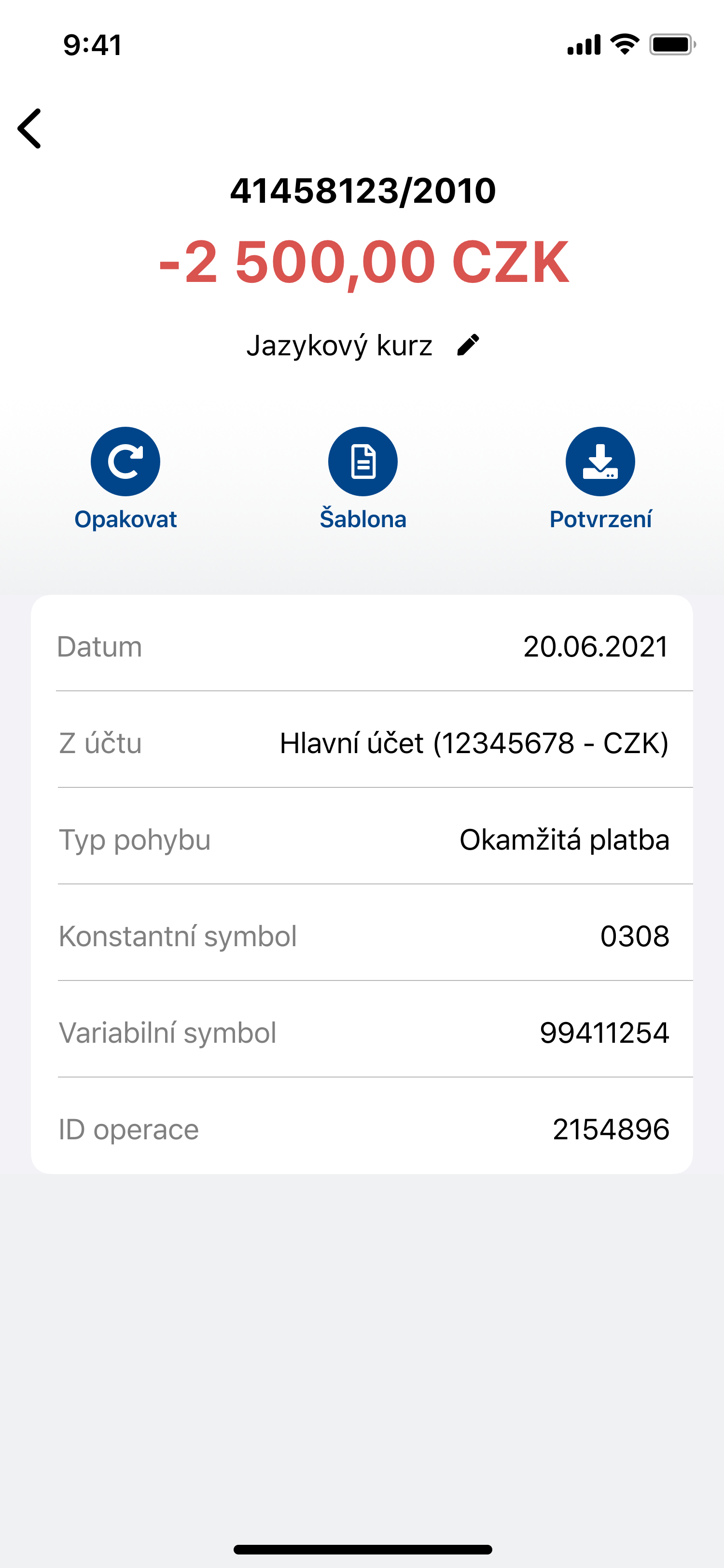 Transakce se potvrzují PINem. Alternativou je autorizace transakcí pomocí otisku prstu nebo pohledem na telefon/Face ID. |