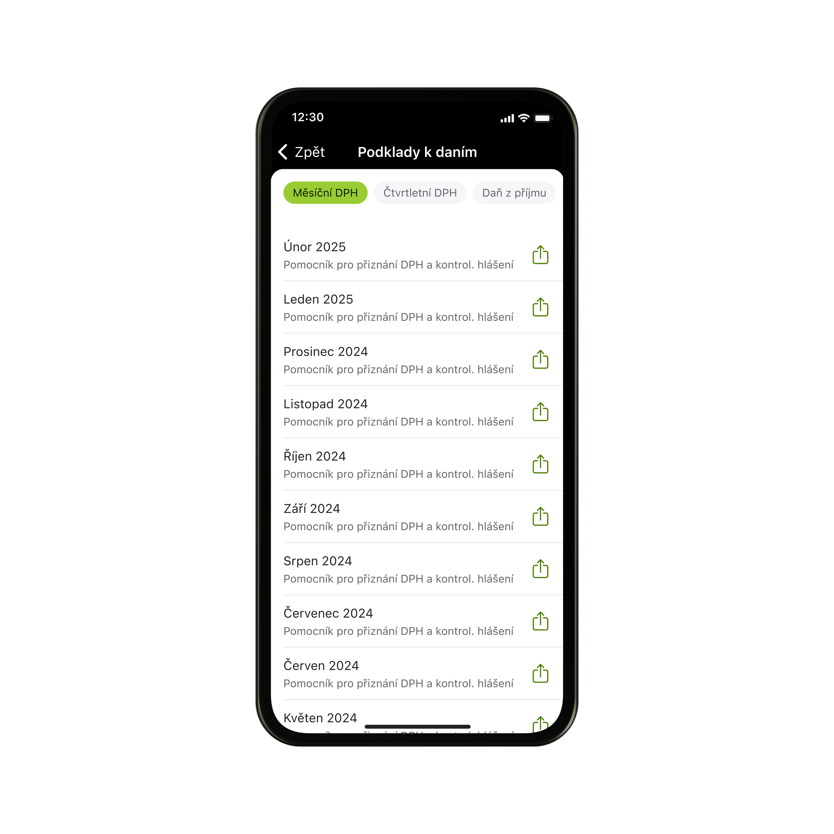 V aplikaci klient nalezne přednastavené měsíční výpisy nebo možnost si vygenerovat výpis podle libovolného období. |