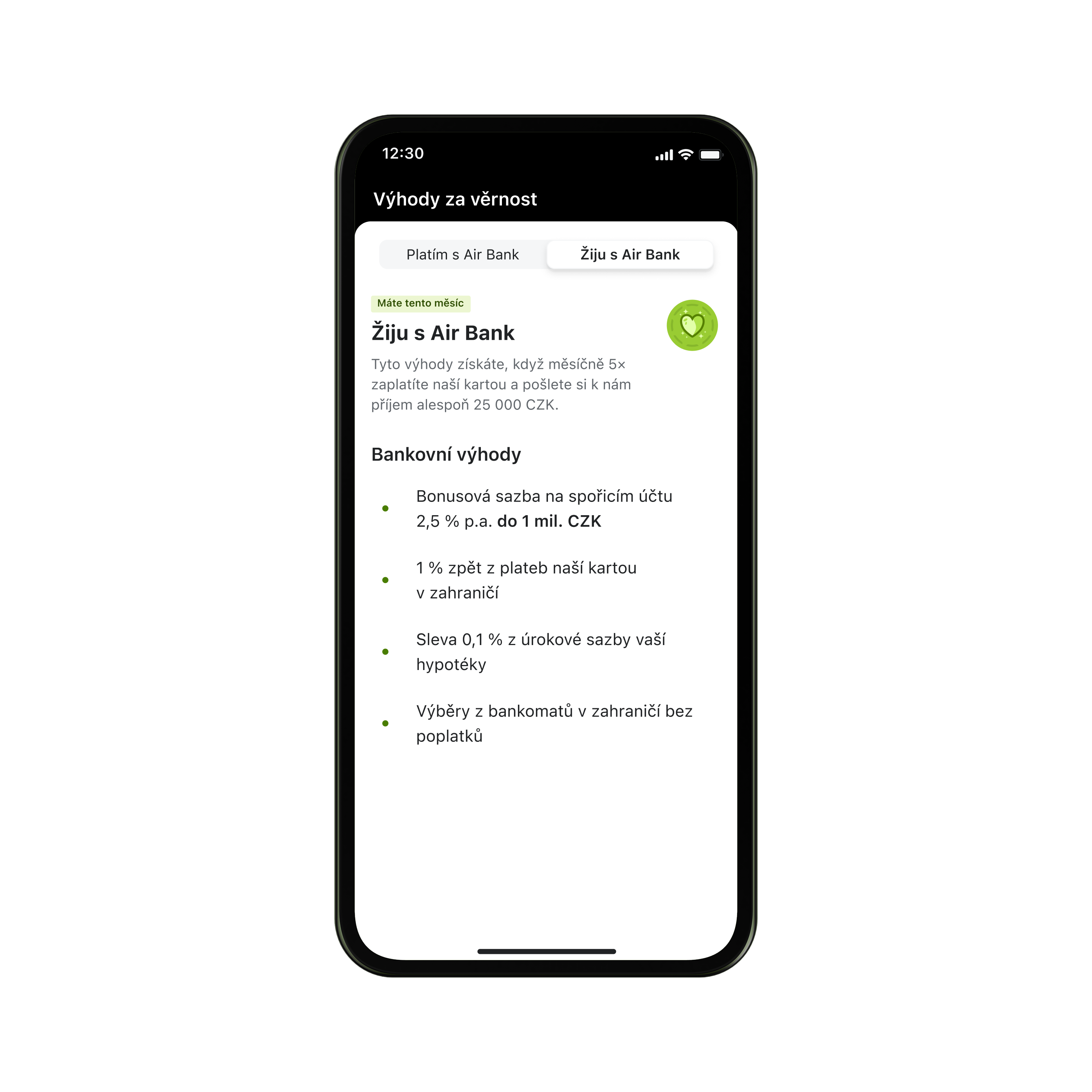 My Air je dlouhodobě nejlépe hodnocené mobilní bankovnictví v Česku – 4,9★ v App Store a 4,8★ v Google Play – díky intuitivnímu ovládání téměř všeho, co umí Air Bank. Klientům pomáháme naplnit potřeby pohodlně z mobilu: založení účtu do 6 minut a na pár kliků si mohou sjednat a obsloužit 95 % našich služeb – od nákupu akcií přes realitime předschválené půjčky až po hypotéku. Díky hlavnímu přehledu a chytrým číslům mají klienti perfektní přehled o svých penězích a bez hledání vyřídí vše důležité, navíc chytrý asistent zvládne kdykoliv vyřídit 75 % všech dotazů. Aplikaci má spárovanou 84 % našich klientů, 900 000 klientů ji využívá v průměru 5× týdně a 450 000 denně. My Air je díky své popularitě nejen klíčovým nástrojem pro budování vztahu s klienty, ale i hlavním prodejním a obslužným kanálem – 80 % prodejů probíhá právě v aplikaci a na pobočkách klientům po přihlášení zrcadlíme jejich vlastní My Air v tabletu. A protože jednoduchost ovládání je pro nás klíčová, chystáme už v květnu nový hlavní přehled, který ještě víc usnadní každodenní správu peněz. |