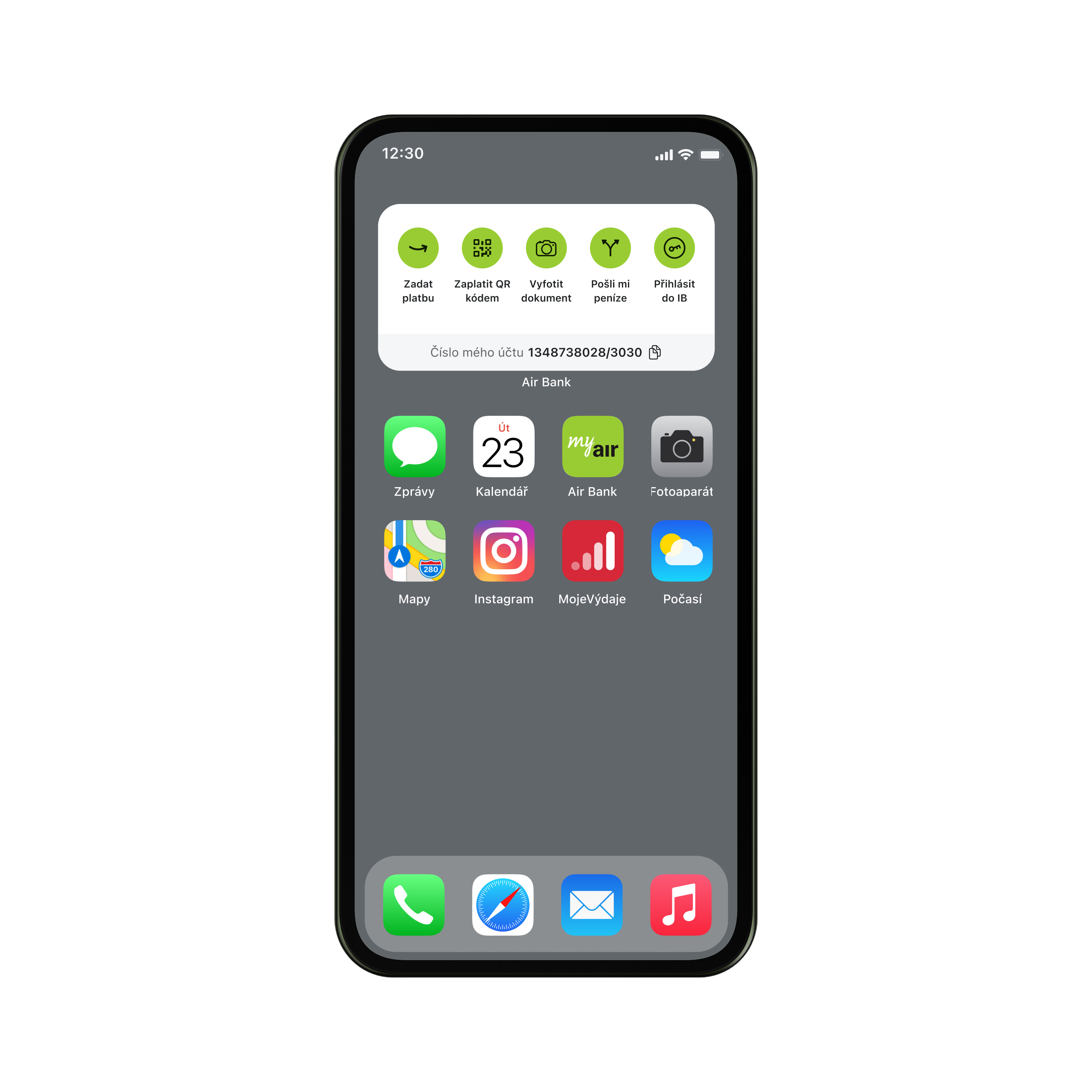 Perfektní přehled ve financích díky unikátním chytrým číslům o hospodaření Chytrá čísla o stavu účtu, například kolik peněz zbývá do výplaty, platby kartou za posledních 7 dnů nebo porovnání útrat s předchozím týdnem. Indikátor plnění podmínek Výhod za věrnost přímo na hlavní obrazovce v reálném čase. Vytažené klíčové informace o produktech přímo na hlavním přehledu včetně např. toho, kolik mám celkem zainvestováno přes více produktů nebo toho, jaké podklady si mám připravit pro další krok v žádosti o hypotéku. Možnost propojit aplikaci s účty jiných bank a vidět tak zůstatek, veškeré pohyby a historii plateb u různých účtů přehledně z jednoho místa. Vytvoření a správa spořicích obálek u spořicího účtu s možností nastavení cílů a sledování progresu. Grafy a přehledy nad vývoji zůstatku a toho, za co utrácím nejčastěji, automatizované třídění plateb do kategorií, kde lze nastavit limity a upozornění podle toho, kolik chci utrácet. Pokročilé vyhledávání plateb s možností součtu selektovaných plateb. Připomínání zaplacení větších částek, třeba pojištění. Intuitivní navigace plná užitečných zkratek Navigační zkratky dál do aplikace na nejčastějších relevantní místa díky swipu u účtů a proběhlých plateb, např. přehled plateb danému obchodníkovi a jejich součet nebo rozdělit danou platbu mezi více lidí. Kontextové akce u sjednaných produktů přímo na hlavní stránce aplikace pro rychlejší ovládání a správu všech produktů, např. vytvořit fakturu u podnikatelského účtu. Sekce Platební nástroje s přehledem všech vychytávek pro pohodlné placení. Virtuální asistentka Aneta, která se stala prvním hlasem ovládaným bankovním mobilním asistentem v českém jazyce. Dokáže vyřešit 75 % dotazů našich klientů a pomocí odkazu je umí nasměrovat do patřičné sekce mobilní aplikace nebo na poradnu s návody. Vyhledávání poboček a bankomatů aliančních bank včetně vkladomatů. 3D touch – aplikace přes ikonu na ploše telefonu umožní rychlou volbu (zadání nové platby, naskenování QR kódu, přihlášení do internetového bankovnictví, Šanon a podobně). Dlouhodobě nejrychlejší a nejpohodlnější placení Potvrzení plateb před přihlášením do aplikace pro bezkonkurenčně nejrychlejší placení. Funkce „drag and drop“ - přesouvání peněz mezi vlastními účty nebo mezi spořicími obálkami pouhým přetažením prstem včetně posílání kapesného na účet pro dítě. Upozornění, zda mi zbývá na zaplacení chystaných plateb po odeslání aktuální platby. Nastavení chytrého inkasa, které před strhnutím platby pošle notifikaci ke schválení částky. Nastavení dočasných nebo trvalých limitů všech typů plateb s úpravou na jeden klik. Jednoduché potvrzování plateb zadaných přes internetové bankovnictví a plateb kartou na internetu pomocí mobilního telefonu místo přepisování kódu z SMS. Možnost digitalizovat platební kartu od Air Bank přímo v mobilní aplikaci se službami Apple Pay, Google Pay, Garmin Pay, Fitbit Pay). Funkce "Pošli mi peníze", díky které je možné platbu rozdělit mezi víc lidí (aplikace spočítá částku po zadání počtu lidí, mezi které se platba rozděluje). Šanon pro ukládání účtenek a dalších dokumentů, rychlé placení vyčtených faktur a možnost nastavení připomínání chystaných plateb. Kompletní správa karet od vystavení virtuální, plastové nebo náhradní karty s okamžitou aktivací, blokace karty nebo zobrazení údajů. Unikátní rozsah služeb ke sjednání na pár kliků a pohodlné obsluze přímo v mobilní aplikaci Rychlé potvrzení všech žádostí pomocí biometrie. Investování do akcií a ETF na pár kliků včetně správy následného portfolia a vývojových grafů. Možnost sjednat a obsluhovat rozsáhlé investiční portfolio produktů na tři kliky a to od těch vhodných pro rychlý výnos po jednom roce po doplňkové penzijní spoření - a to včetně přehledových informací o výkonu jednotlivých produktů i celého portfolia na jednom místě. Realtime přepočet hodnoty předschválené půjčky včetně možnosti konsolidace půjček předchozích. Možnost podat plnohodnotnou žádost o hypotéku (Air Bank tuto možnost zavedla jako první banka v České republice), v aplikaci je také možné podat žádost o převedení hypotéky z jiné banky do Air Bank, a stejně tak i možnost spočítat si orientační parametry hypotéky na přehledné kalkulačce. Rozložení proběhlé platby až dva měsíce zpětně pro snazší balancování rozpočtu. Možnost založení účtu pro děti ve věku od 8 do 14 let (od 15 let může mít klient vlastní účet) s jednoduchým párováním dětské aplikace bez nutnosti přihlášení do internetového bankovnictví. Speciální dětská verze mobilní aplikace My Air, ve které se děti ve věku od 8 do 14 let v rolích disponentů naučí moderně hospodařit se svými penězi, a to bezpečně pod dohledem rodičů. Možnost sjednat produkty, které nejsou dostupné v internetovém bankovnictví (například cestovní pojištění nebo pojištění věcí a peněz). Žádost o bankovní mobilitu, kdy se Air Bank kompletně postará o převod účtu z jiné banky, včetně zrušení původního účtu a přednastavení platebních příkazů (klient se díky tomu nemusí o nic starat a ušetří tak čas). Služba Odměny za placení, díky které si klienti mohou zlevnit své nákupy u vybraných obchodníků. Snadné propojení aplikace a ověřování klienta během pár vteřin pomocí biometrie Jednoduché založení a aktivace bankovního účtu přímo v mobilní aplikaci do 6 minut. Pohodlné a rychlé propojení nového zařízení díky ověření obličeje pomocí technologie