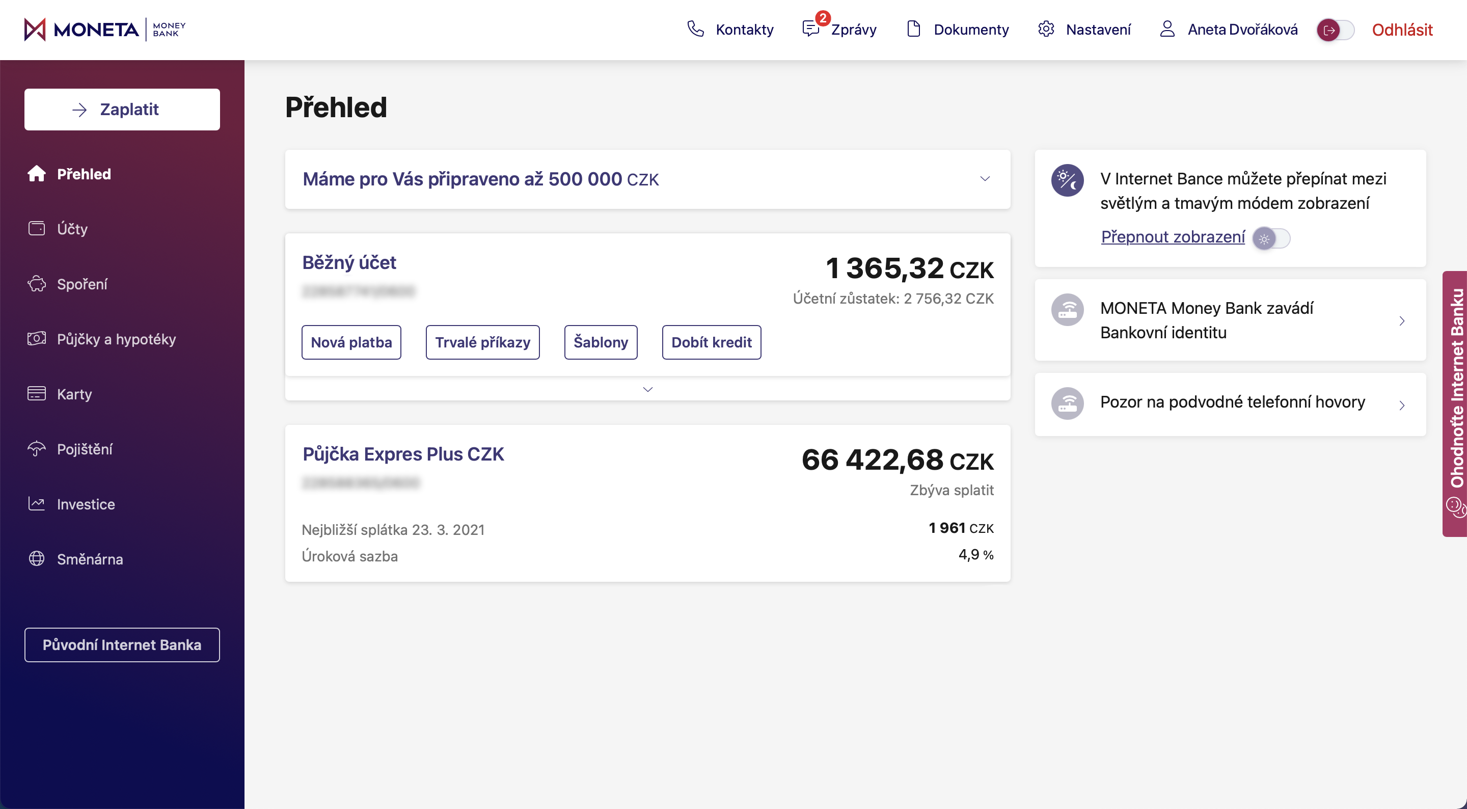 Nová Internet Banka výrazně usnadnila a urychlila správu financí pro naše klienty a umožňuje jim pohodlnější přihlašování pomocí mobilní aplikace Smart Banka. Původní Internet Banku, která získala řadu ocenění veřejnosti i kritiků, jsme představili v roce 2007. Uvědomujeme si ale, že doba se změnila a současně s ní i potřeby našich klientů. Co najdete v nové Internet Bance? Na řadě dalších funkcionalit a nových produktů intenzivně pracujeme a přinášíme novinky do Internet Banky s pravidelnými měsíčními releasy. |
