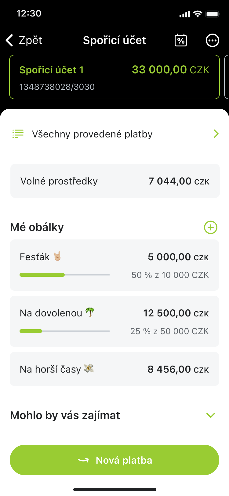 - Možnost zakládat spořicí obálky, díky kterým má klient dokonalý přehled o všech svých penězích |