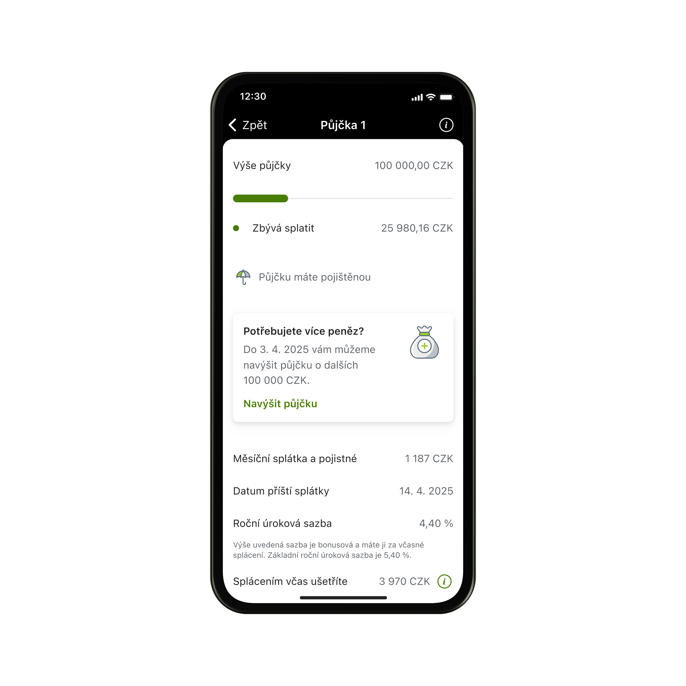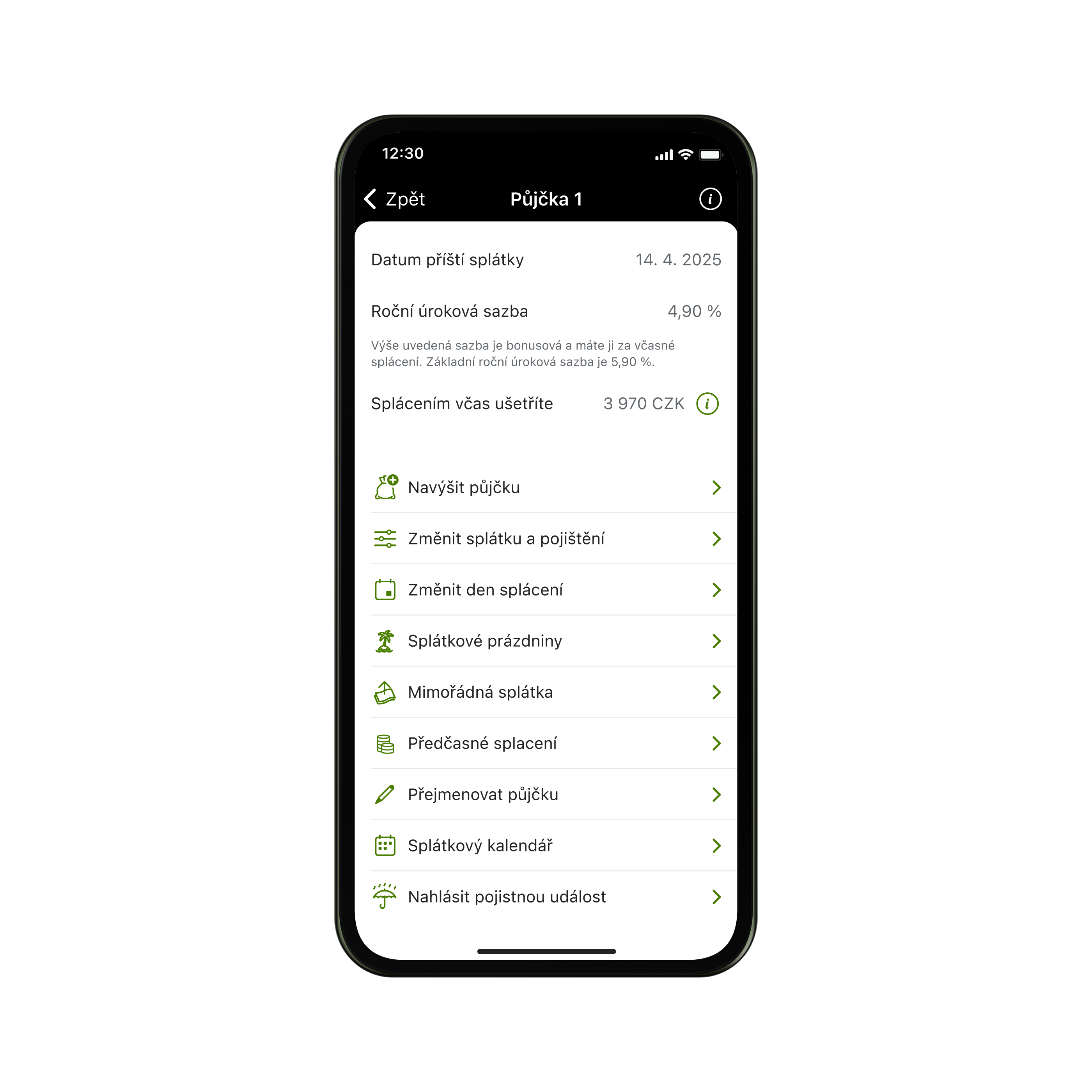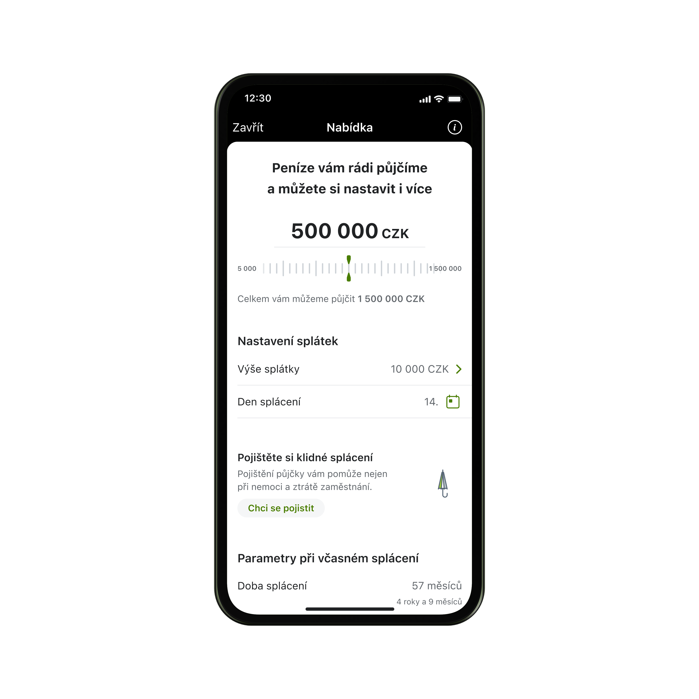 Pravidelné měsíční splátky s možností kdykoliv provádět mimořádné splátky a také půjčku kdykoliv předčasně splatit. |
