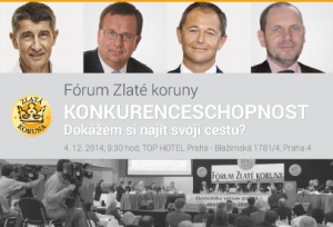 Praha 1. prosince 2014 – Konkurenceschopnost není u nás příliš frekventovaným slovem přesto, že v dnešním globalizovaném světě představuje klíčový pojem. Pozornost k němu proto zaměří Fórum Zlaté koruny, které se uskuteční ve čtvrtek 4. prosince za účasti 1. místopředsedy vlády a ministra financí Andreje Babiše a ministra průmyslu a obchodu Jana Mládka.