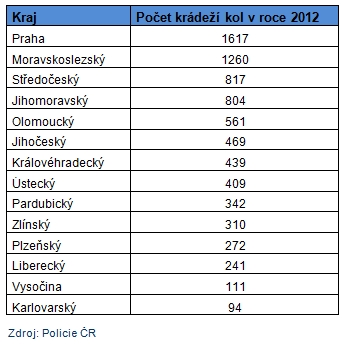 K největšímu počtu krádeží jízdních kol došlo podle dat Policie ČR v loňském roce na území hlavního města Prahy a v Moravskoslezském kraji. Naopak nejméně kol bylo podle policie odcizeno na Karlovarsku. Uvedená čísla ovšem nezohledňují počet obyvatel ani počet jízdních kol v daných krajích, nelze tedy jednoznačně určit, který kraj je „nejrizikovější“.