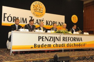 Pod názvem Penzijní reforma – „Budem chudí důchodci?“ se v úterý v TOP HOTELu Praha sešlo VIII. Mezinárodní fórum Zlaté koruny. Za účasti premiéra Petra Nečase a ministra práce a sociálních věcí Jaromíra Drábka na tomto tradičním a silně obsazeném setkání odborníci od nás a ze zahraničí tentokrát diskutovali o podobě penzijní reformy. Několikahodinovou diskusi, která se dotkla nejrůznějších aspektů chystané reformy, si vyslechlo téměř 400 přímých účastníků. Živé reportáže z průběhu fóra vysílala ČT24 a další tisíce lidí průběh sledovaly prostřednictvím internetu. Generálním partnerem fóra byla společnost OVB Allfinanz, a.s.