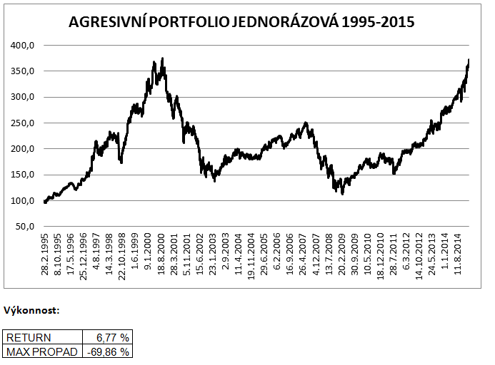 5) Výnosy agresivněji postavených portfolií nijak mimořádně nepřevyšovaly výnosy vyváženého portfolia, ale hodnoty jejich maximálních propadů jsou citelně vyšší.