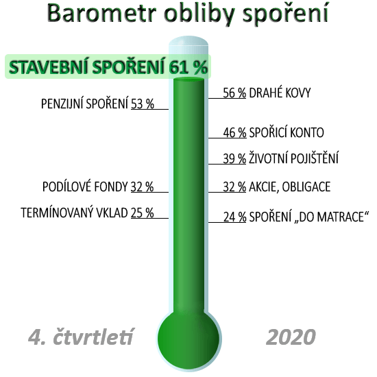 Stejně jako na jaře letošního roku považují Češi i při druhé vlně koronavirové epidemie stavební spoření za nezajímavější způsob spoření. Oproti minulému čtvrtletí vzrostla obliba stavebka o pět procentních bodů, čímž se stalo skokanem čtvrtletí.