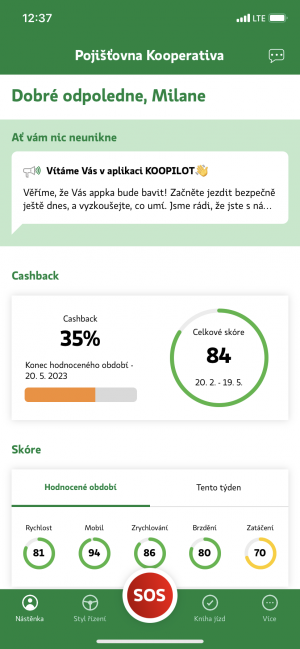 Novinkou, kterou pojišťovna Kooperativa připravila pro řidiče, je bezplatná aplikace do mobilního telefonu, která poskytne základní data o jejich stylu jízdy. Kromě skvělé zpětné vazby mohou řidiči získat i slevu na pojištění. „Každý, kdo jezdí bezpečně, si zaslouží odměnu. Naši klienti mají možnost získat zpět část z celkového ročního pojistného, a to podle toho, jakého skóre v každém čtvrtletí během roku dosáhnou. Zároveň mají v naší aplikaci KOOPILOT okamžitou informaci, jak si vedou,“ představuje novinku Aleš Zethner, ředitel Úseku pojištění motorových vozidel v Kooperativě.