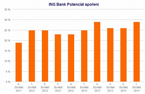 Index ING Bank Potenciál spoření oproti minulému roku vzrostl o 4 %. Příjmy Čechů přesahují jejich výdaje o 29 %, tolik by tedy mohli odkládat stranou, pokud by chtěli. Vysokoškoláci by přitom mohli odkládat až 42 % svých příjmů, lidé se základním vzděláním 19 %.