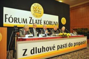 V úterý se v TOP HOTELu Praha sešlo v pořadí již XI. Fórum Zlaté koruny. Konalo se pod záštitou premiéra Petra Nečase a ministra financí Miroslava Kalouska a vystoupili na něm přední ekonomové, finančníci a podnikatelé. Pod názvem „Z dluhové pasti do propasti?“ se diskutovalo o prohlubujících se problémech evropské dluhové krize a o jejích dopadech na Českou republiku.