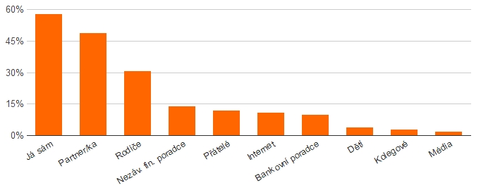 Pokud Češi plánují nákup nového domu, auta či pračky nebo se rozhodují, kam uložit své úspory, nejčastěji spoléhají sami na sebe (58 %). Bezmála polovina pak při finančním rozhodování důvěřuje partnerovi a téměř třetina také svým rodičům. Průzkum ING Bank Svět spoření ukázal také to, že muži věří v důležitých finančních otázkách svým partnerkám častěji než ony jim.