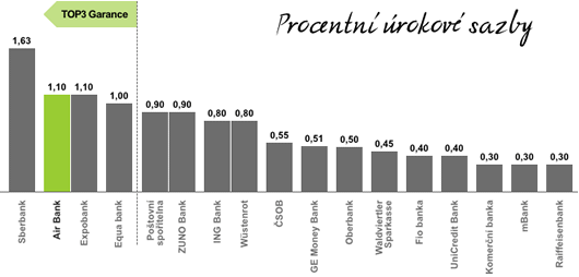 Air Bank hlásí ve svém pravidelném přehledu, co je nového ve světě spořicích účtů na konci roku. - Na prvním místě se i v prosinci drží Sberbank s úrokem 1,63 %. Air Bank díky TOP3 garanci se umístila na druhém místě. Ovšem dělí se o něj s Expobank, která má stejně jako Air Bank úrok 1,1 % ročně. Na třetím místě je pak s mírným odstupem Equa bank s úrokem 1 %.
