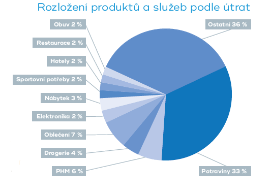 Loni zástupkyně něžného pohlaví nechaly nejvíce v obchodech s potravinami 33 %. Za zmínku ještě stojí obchody s oblečením 7 %. V obchodech s obuví skončily jen 2 % útrat z ženských peněženek. V kategorii ostatní jsou zahrnuty např. šperky, květiny či kulturní akce, ale jedná se jen o zlomky procent. Z hlediska počtu nákupů u žen jednoznačně stále vedou kamenné obchody, a to v 92 % případů.