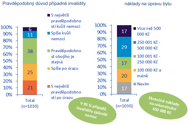 Češi netuší, kolik stojí bezbariérová úprava bytu, ani jak vysoký by měli invalidní důchod. Ti, kdo pojištění mají, tvrdí, že si invaliditu sjednali bez předchozí špatné zkušenosti s tímto rizikem. Ve skutečnosti si ale pojistí trvalé následky úrazu a věří, že mají invaliditu pojištěnou. Jenže ta vzniká hlavně jako důsledek onemocnění, úrazem jen v 5 % případů. A to 80 % lidí neví.