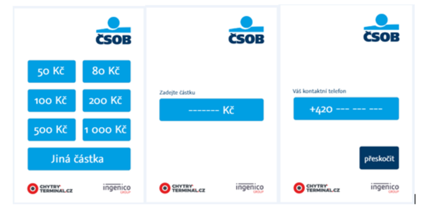 částek (včetně možnosti vybrat si vlastní), a dále možnost tisku nějaké