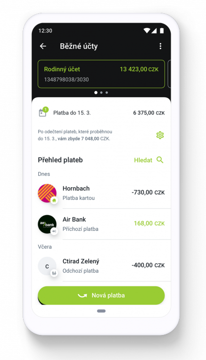 Splátky úvěrů ano, kreditní karty ne (Air Bank tento produkt neposkytuje) |