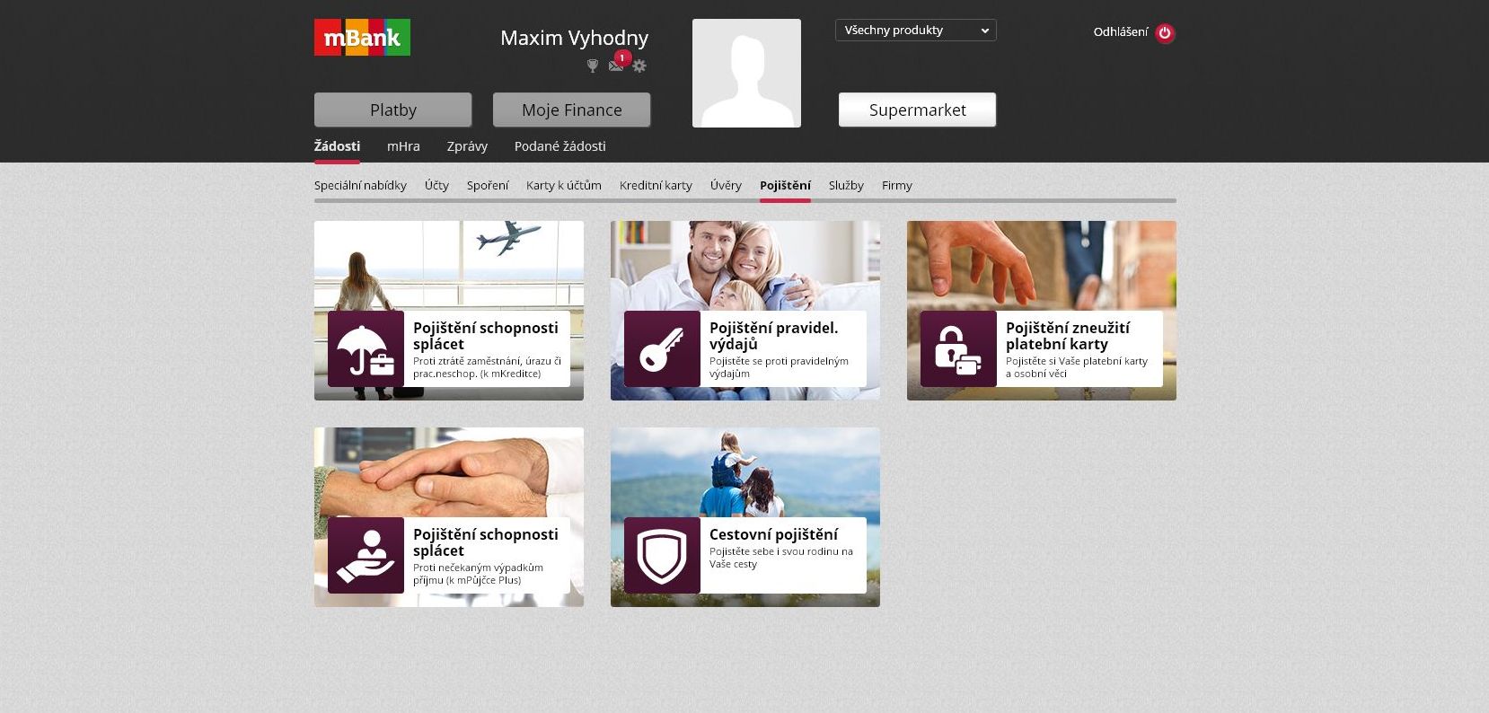 účty, karty, úvěry, spořicí účty, vklady, pojištění |