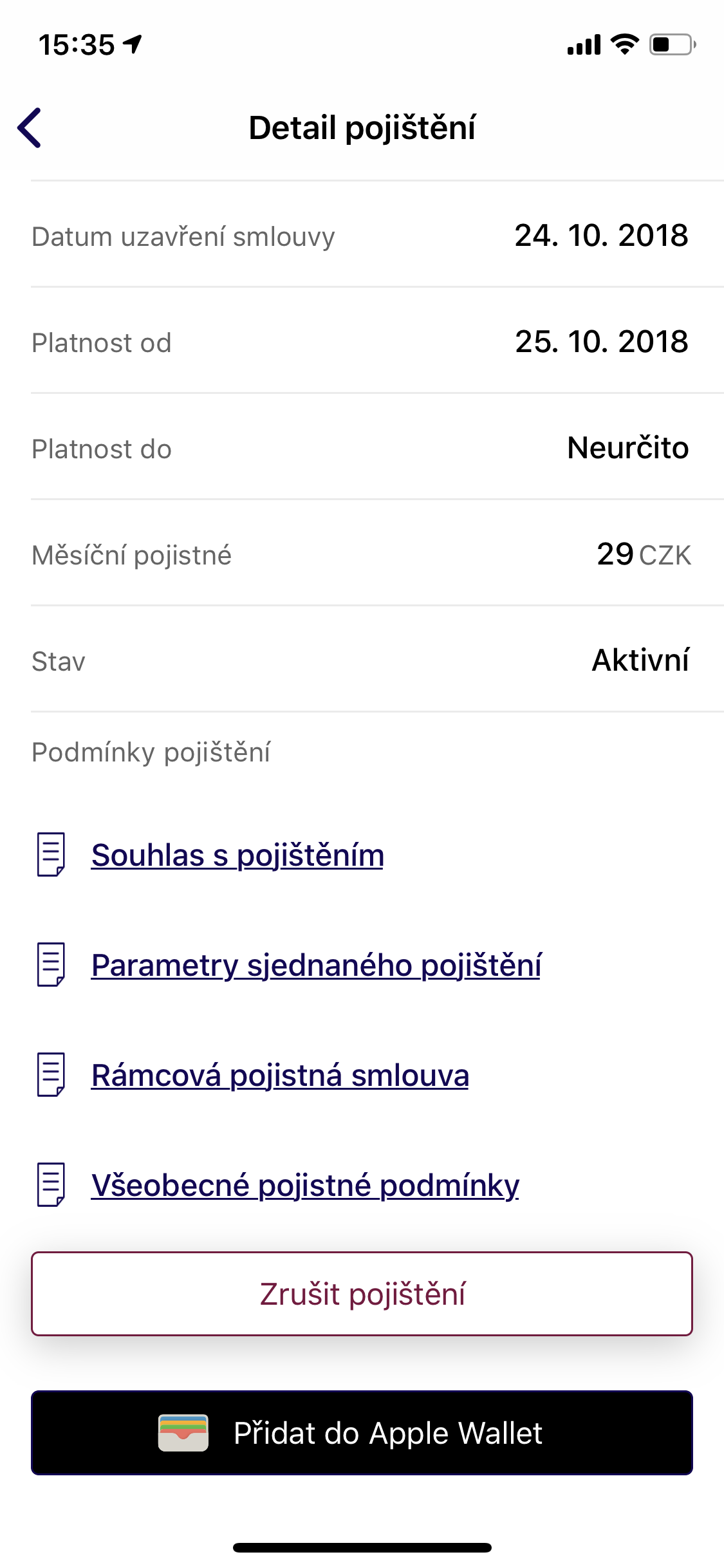 ◙ aplikace umí vygenerovat kartičku pojištěnce - s hlavními údaji - telefon na nahlášení škody a limity krytí. Kartičku lze uložit do digitální peněženky Apple Wallet nebo Google Pay, případně jakékoliv jiné digitální peněženky. |