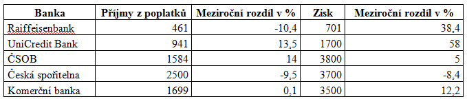 v mil. Kč, Zdroj: výsledky jednotlivých bank, zpracování: www.bankovnipoplatky.com