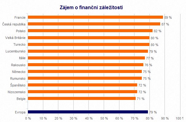 Evropané obecně považují své peníze za věc hodnou zájmu. Téměř osmi z deseti (79 %) obyvatel Starého kontinentu nejsou jejich finanční záležitosti lhostejné. Nejaktivněji se k této otázce staví Francouzi, následovaní Čechy. Na druhé straně spektra jsou Belgičané, Nizozemci a Španělé, ale i v těchto státech je velký počet lidí, kteří se zajímají o svou finanční budoucnost.