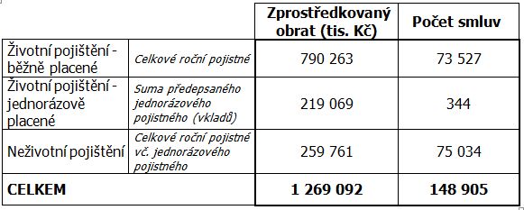 V oblasti pojištění bylo v daném období sdruženými subjekty zprostředkováno běžně placené životní pojištění v objemu 790 263 tis. Kč, jednorázově placené 219 069 tis. Kč a neživotní pojištění v objemu 259 761 tis. Kč, to vše při celkovém počtu 160 465 smluv.
