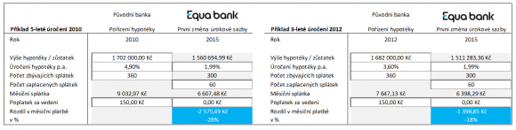 „Ještě nikdy nebyly úrokové sazby tak nízko, jako je nabízíme nyní. Zájemci přitom mohou u nás sjednat hypotéku až 12 měsíců před jejím plánovaným čerpáním. Nízké sazby ocení především ti, kteří si pořídili hypotéky v letech 2010 a 2012, kdy se průměrné úrokové sazby pohybovaly od 3,6 do 5 procent. Tito klienti mohou díky naší nabídce uspořit na každé splátce i několik tisíc korun, ročně pak několik desítek tisíc korun,“ uvedl Ondřej Hák, ředitel oddělení úvěrových produktů Equa bank.