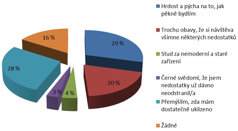 Podle ankety Raiffeisen stavební spořitelny se 55 % respondentů před svými hosty za to, jak bydlí, spíše stydí. U návštěvy nejčastěji řešíme, zda je dostatečně uklizeno a jestli si hosté všimnou některých nedostatků a zastaralého zařízení. Anketa ukázala, že nespokojenost panuje především s podobou kuchyně a koupelny. Osm z deseti dotázaných přiznalo, že by se před návštěvou cítilo lépe, kdyby provedli úpravy svého bydlení.
