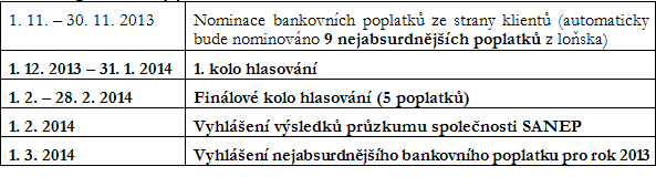 IX. ročník ankety o nejabsurdnější bankovní poplatek v ČR a SR pro rok 2013 - NOMINACE