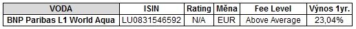 Speciální sektorový fond zaměřený na akcie podniků zabývajících se vodním hospodářstvím, který je od čtvrtého čtvrtletí registrován pro veřejnou nabídku v České republice. Aktuální alokace fondu je složena ze šedesáti procent z akcií infrastrukturních podniků, dalších třicet procent portfolia je vloženo do akcií společností, jejichž objektem činnosti je péče o vodu a závěrečný desetiprocentní podíl pak mají společnosti distribuující pitnou vodu.