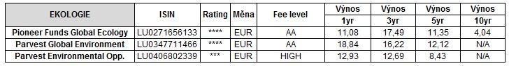 Ekologické fondy investují zpravidla do akcií společností, jejichž produkty nebo technologie jsou šetrné k životnímu prostředí, nebo které přispívají k jeho zlepšování. V portfoliu pak nalezneme firmy podnikající v oborech kontroly znečištění ovzduší, alternativních zdrojů energie, recyklování a pochopitelně také v úpravě odpadních vod a čistění vodních zdrojů. Dobré je i to, že přes výbornou výkonnost těchto fondů téma ekologie stále ve velké většině portfolií chybí.