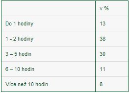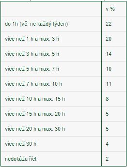 Nejčastěji přitom lidé tráví na Facebooku do třech hodin týdně (41 procent), více než tři hodiny a méně než deset pak zhruba každý třetí (35 procent). Více než deset hodin věnuje síti více než každý pátý (22 procent). Zhruba 1,5 procenta respondentů se k síti nepřihlašuje každý týden.